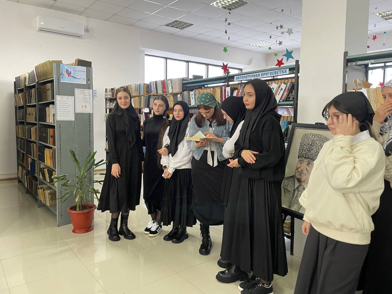 Работники библиотеки рассказали студентам о самых интересных книгах, о фонде библиотеки, о самых больших библиотеках мира и о проводимых в библиотеке мероприятиях. Далее заведующая краеведческим отделом Бабуева Хазан рассказала о представленной литературе, о редких экземплярах и о самых читаемых во все времена произведениях. Продолжилась экскурсия в методико-библиографическом отделе, где ребятам разъяснили о проводимой работе по разработке методических пособий в помощь библиотекарям. Завершили экскурсию в кабинете директора Наурской ЦБС, заслуженного работника культуры ЧР Лабазановой М.Ш, которая рассказала, что молодое поколение должно знать свое прошлое, чтобы быть успешным в будущем