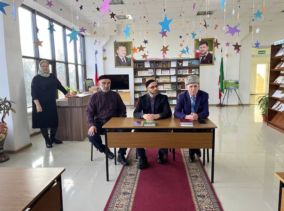 17.01.202417 января в рамках духовно-нравственного воспитания подрастающего поколения в Наурской центральной районной библиотеке состоялся тематический час «В круге жизни: обычаи и традиции чеченцев». В мероприятии приняли участие: Народный писатель Чеченской Республики Сейлмуханов М.М., Председатель Совета старейшин Наурского района Мутиев М.А. и студенты Наурского социально-экономического колледжа.