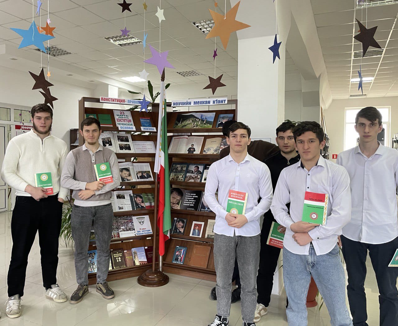 Библиотекари рассказали посетителям о знаменательном для Чеченской Республики дне, о том, что прописано в конституции, почему конституционное нарушение влечет уголовную ответственность, и какие изменения были внесены в конституцию. Далее ребята узнали о самых основных законах, прописанных в Конституции ЧР, которые должны соблюдать все граждане ЧР и многое другое. Студенты поделились своим опытом и рассказали о нарушениях и о соблюдении закона в тех или иных ситуациях, а заведующая предоставила ребятам материал для личного чтения, относительно права.