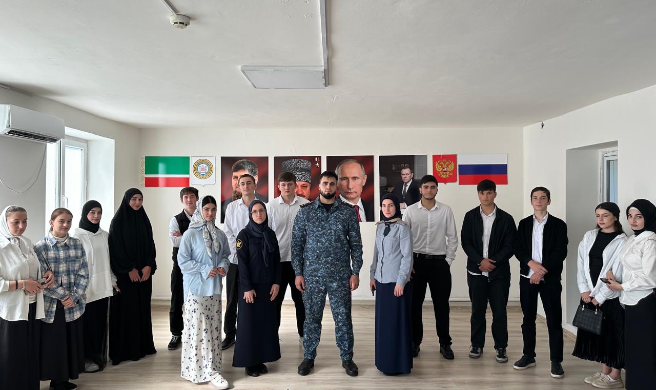 24 сентября 2025 года в рамках Всероссийской акции, приуроченной ко Дню воссоединения ДНР, ЛНР, Херсонской области и Запорожской области с Российской Федерацией, прошла встреча со студентами ЧПОУ «Наурский социально-экономический колледж», на которой старший инспектор отдела кадров и работы с личным составом ФКУ ИК-2 УФСИН России по Чеченской Республике, капитан внутренней службы Муртазалиева Фатима, старший инструктор по боевой и специальной подготовке старший лейтенант внутренней службы Дахшаев Увайс, инспектор отдела кадров и работы с личным составом, лейтенант внутренней службы Муридова Танзила рассказали о героизме участников специальной военной операции, об историях мужества, самоотверженности и преданности своей Родине наших граждан.На встрече студенты имели возможность задавать вопросы, касающиеся прохождения службы в уголовно-исполнительной системе, поступления на службу, на которые они получили исчерпывающие ответы.