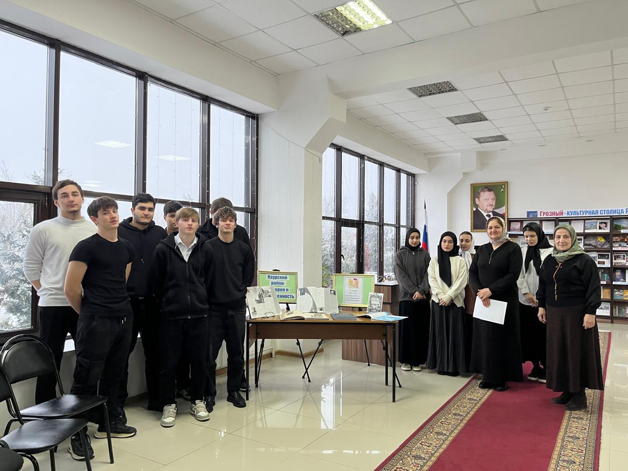 23 января 2026 года исполнилось 91 год со дня образования Наурского района. К этой дате 23 января в читальном зале Наурской центральной районной библиотеки краеведческий отдел провел час краеведения «Наурский район: история и современность». Для студентов Наурского социально-экономического колледжа. В ходе мероприятия слушателей познакомили с богатой историей, начиная с 1935 года – со дня образования Наурского района, и ее современным развитием, которое началось с 2011 года – Года Наурского района. За это время были построены и отремонтированы новые школы, детские сады, культурные и спортивные объекты. Далее в рамках краеведческого часа поговорили об известных и знаменитых людях – выходцах Наурского района: В.И. Сафонов – известный дирижер и пианист, В.Т. Малиновский – Герой Советского Союза, Хамидов Эльмурза – Герой социалистического труда, а также наши современники Р.А. Дадаев – депутат Парламента ЧР, М.М. Сейлмуханов – Народный писатель ЧР и почетный гражданин Наурского района, Ислам Дугучиев – серебряный призер Олимпийских игр, Пазлу Умаров – Заслуженный тренер, Ислам Алиев – победитель первенства мира среди юниоров 2021 года, Имран Алиев – победитель первенства мира среди юниоров 2023 года и другие. Вниманию присутствующих была представлена одноименная фото-документальная выставка «Наурский район: история и современность». Библиотекарь познакомила студентов с литературой, посвященной району, проведя библиографический обзор.